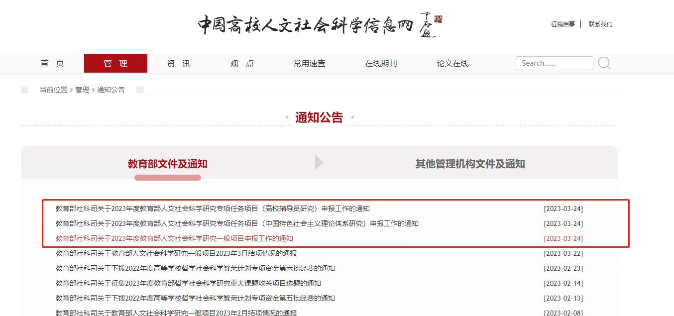① 教育部社科司关于2023年度教育部人文社会科学研究一般项目申报工作的通知