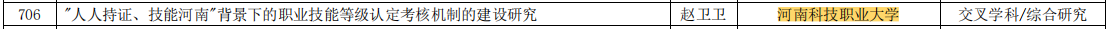 经学校推荐、教育厅组织专家评审,2023年度河南省高校人文社会科学研究一般项目我校立项数再创新高,共立项8项。其中资助性计划一项(李彬),指导性计划7项(赵文杰、马婷、韩艳杰、黄艳群、刘凡、赵卫卫、吴衡)
