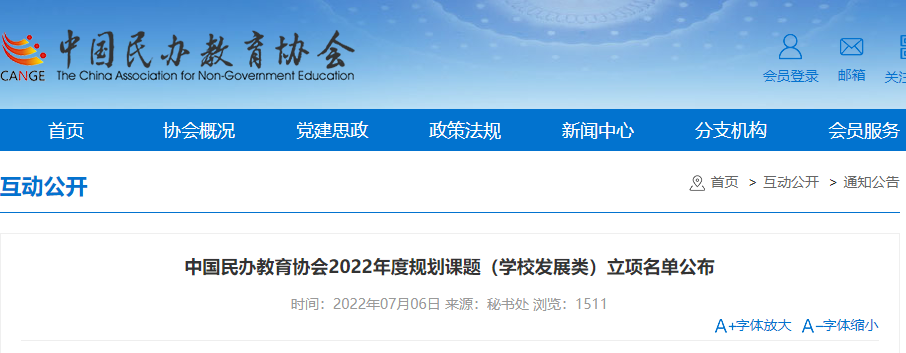 中国民办教育协会2022年度规划课题(学校发展类)立项名单已公布。恭喜我校夏永亮、赵艳杰、张吨、姜晓荣、徐忠根五位老师的课题获批立项。请老师们根据《中国民办教育协会课题管理办法(试行)》、《关于申报中国民办协会2022年度规划课题的通知》准备结项工作。