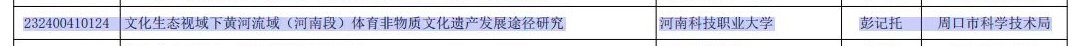 祝贺我校彭记托老师主持的《文化生态视域下黄河流域(河南段)体育非物质文化遗产发展途径研究》项目获批河南省软科学研究(指导立项)。