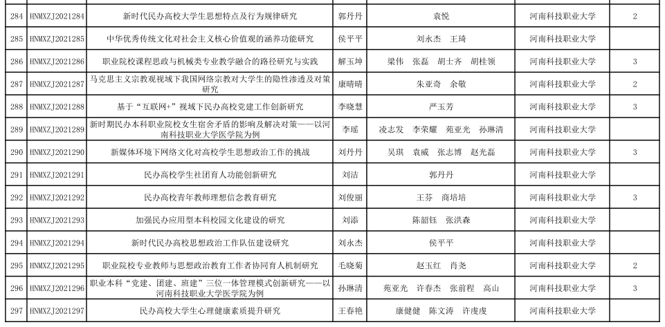 附件下载:2021年度河南省民办教育协会党建和思政专项课题结项评奖一览表.pdf
